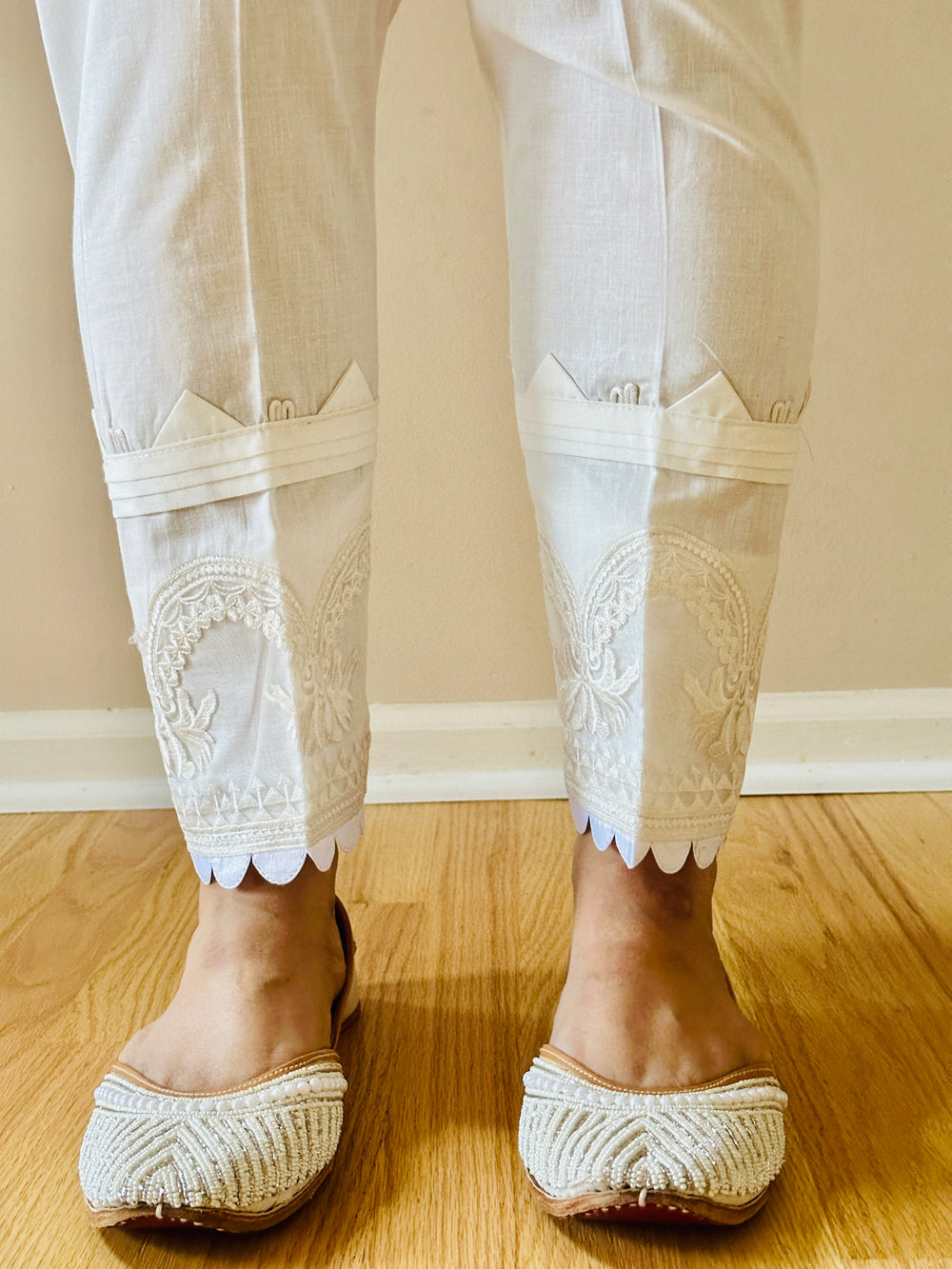 EMBROIDERED COTTON STRAIGHT PANTS WHITE EMST19