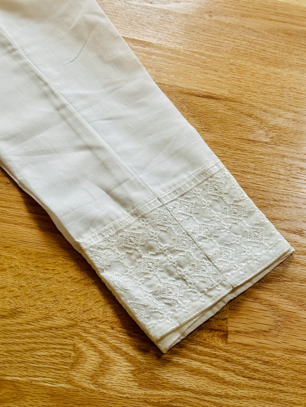 EMBROIDERED COTTON STRAIGHT PANTS WHITE EMST22