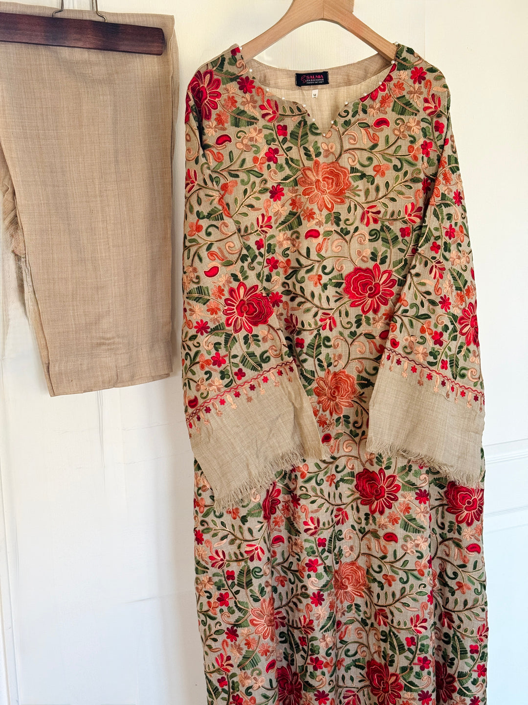 EMBROIDERED LINEN SUIT WITH WOOLEN SH...