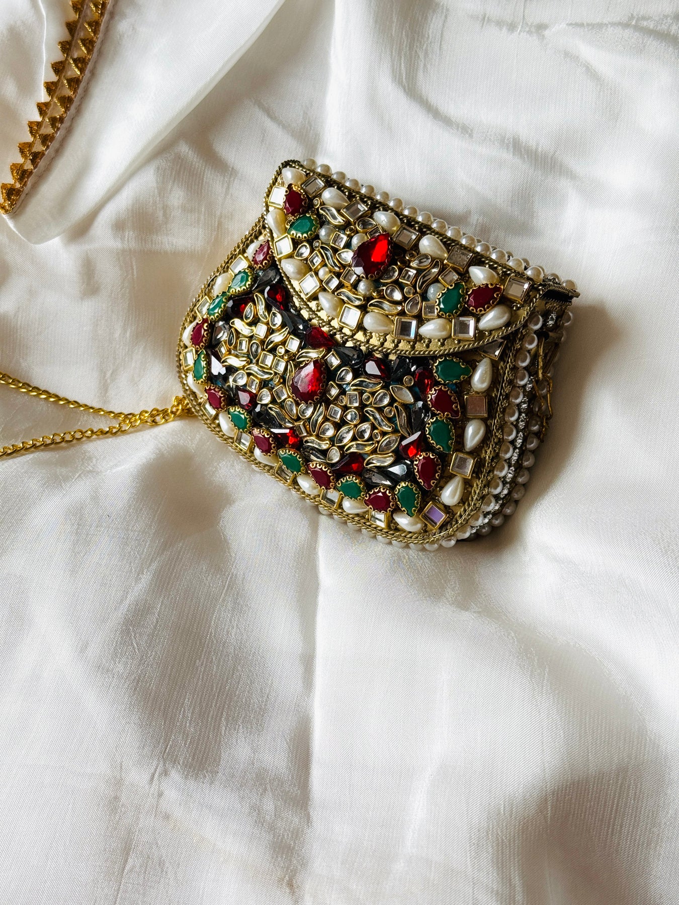 Step into a season of pure elegance with our handcrafted kundan clutches.