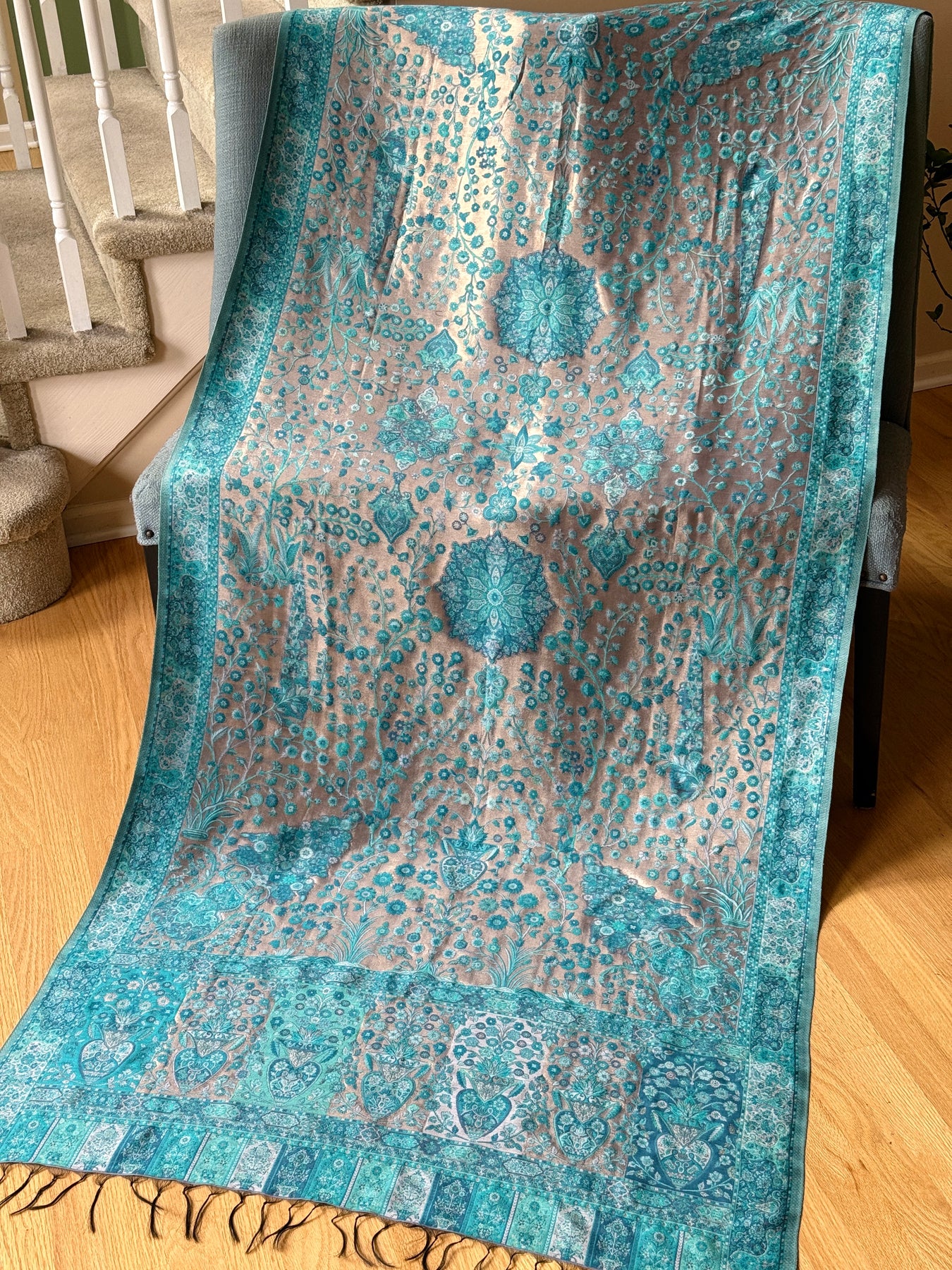 Elevate your winter wardrobe with the Khani Moonlight Woven Pashmina Shawl, a masterpiece of traditional craftsmanship and refined elegance. This luxurious shawl features authentic khani weaving techniques combined with delicate moonlight detailing that catches the light beautifully. Crafted from premium pashmina, it drapes with exceptional softness and warmth, making it an ideal layering piece for both formal occasions and everyday sophistication.Whether styled over ethnic ensembles or contemporary outfits, this versatile accessory completes any look with understated luxury and timeless appeal.