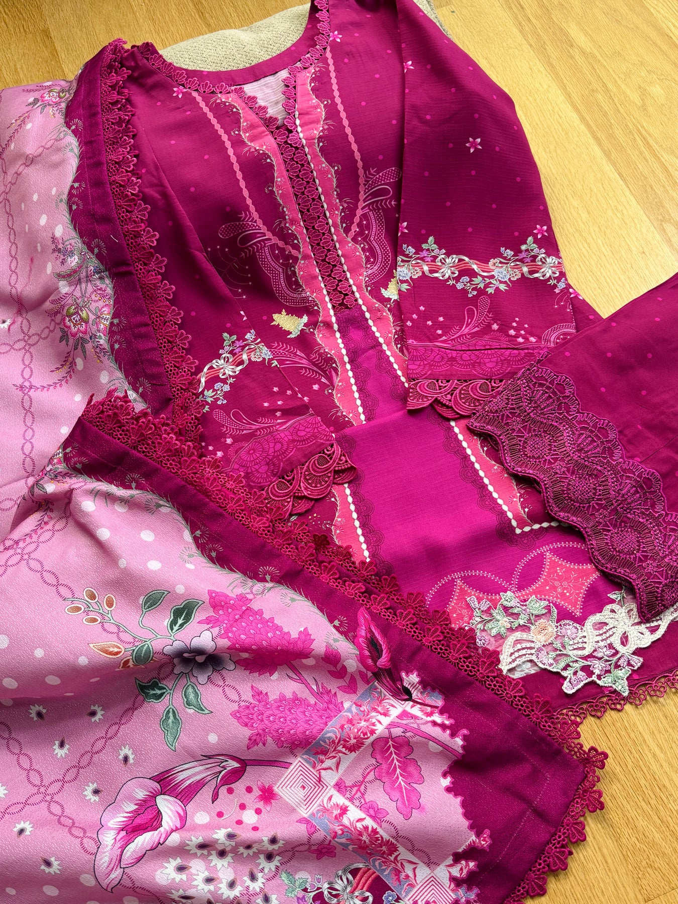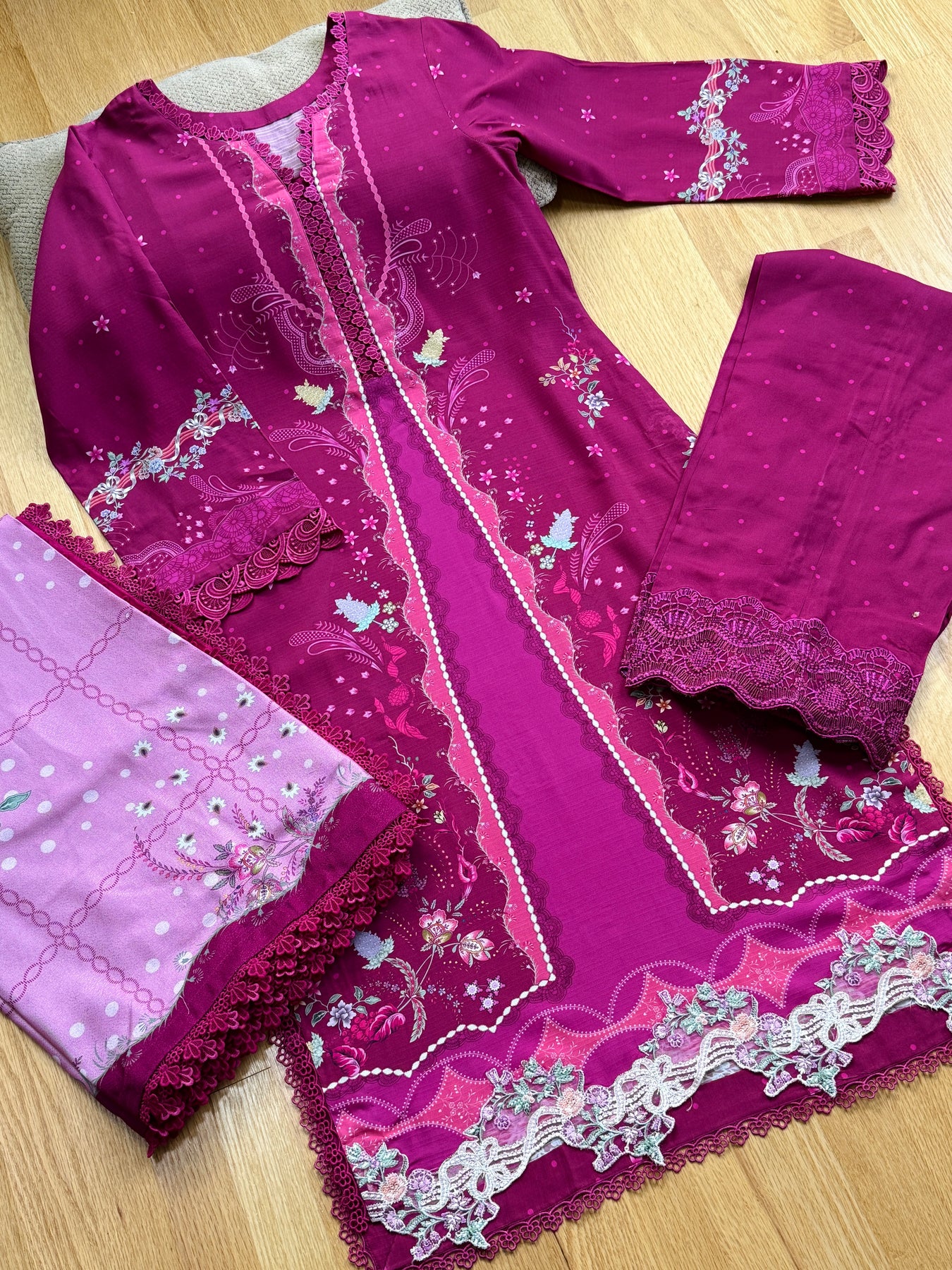 All designer suits are stitched to perfection and styled using premium accessories same like model!!