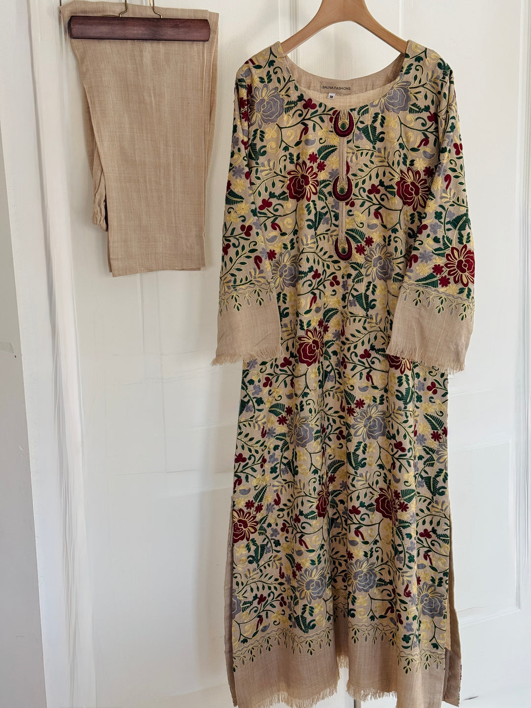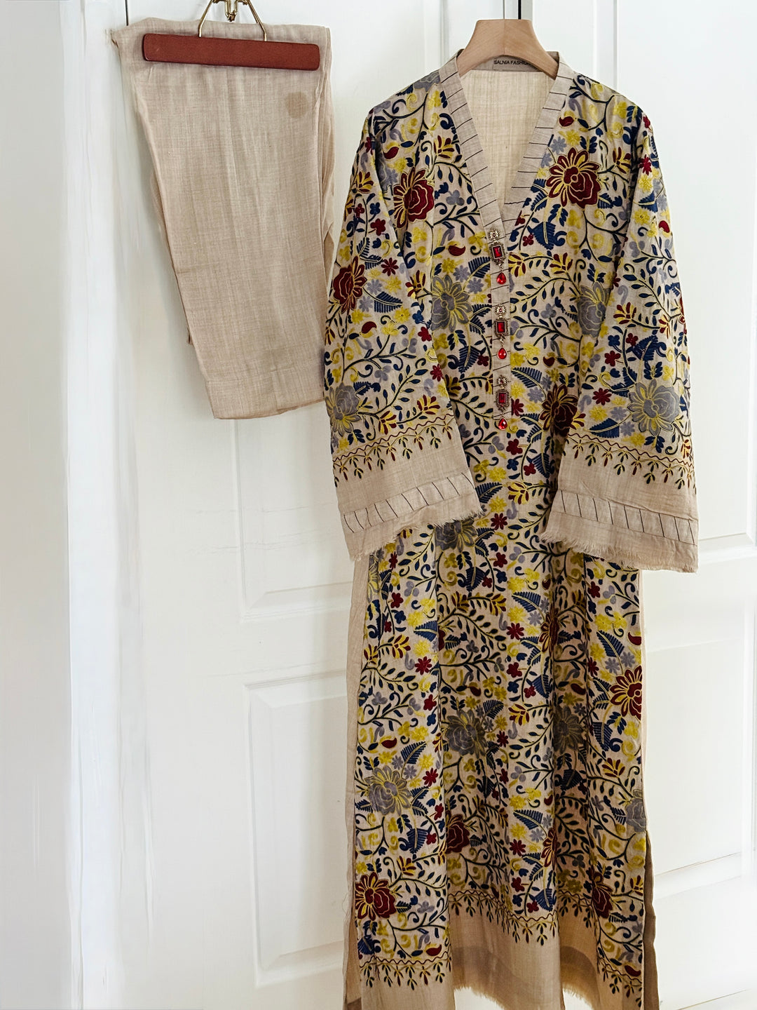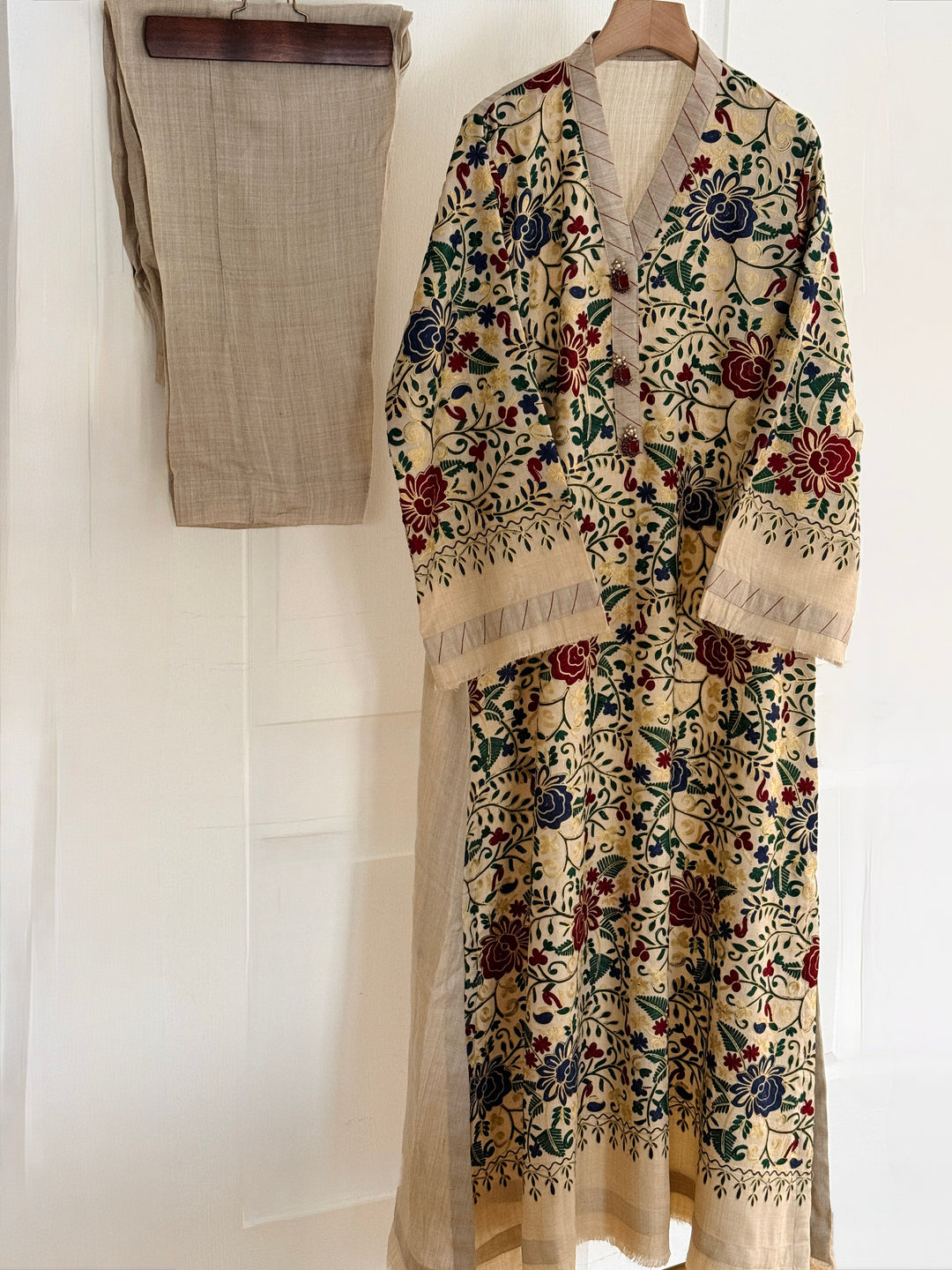 EMBROIDERED LINEN SUIT WITH WOOLEN SH...