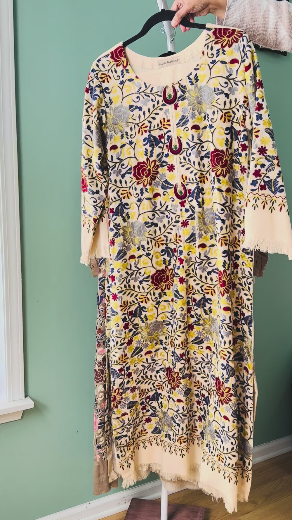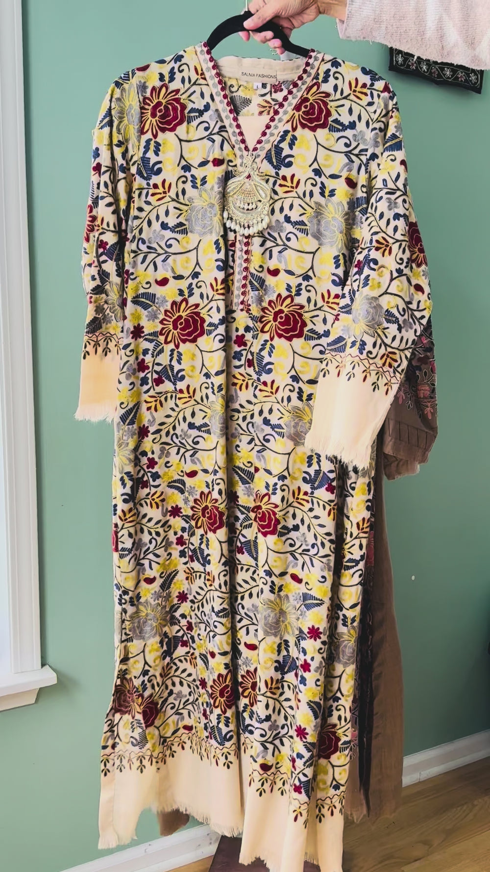 AARI EMBROIDERED PASHMINA KAFTAN SFP21